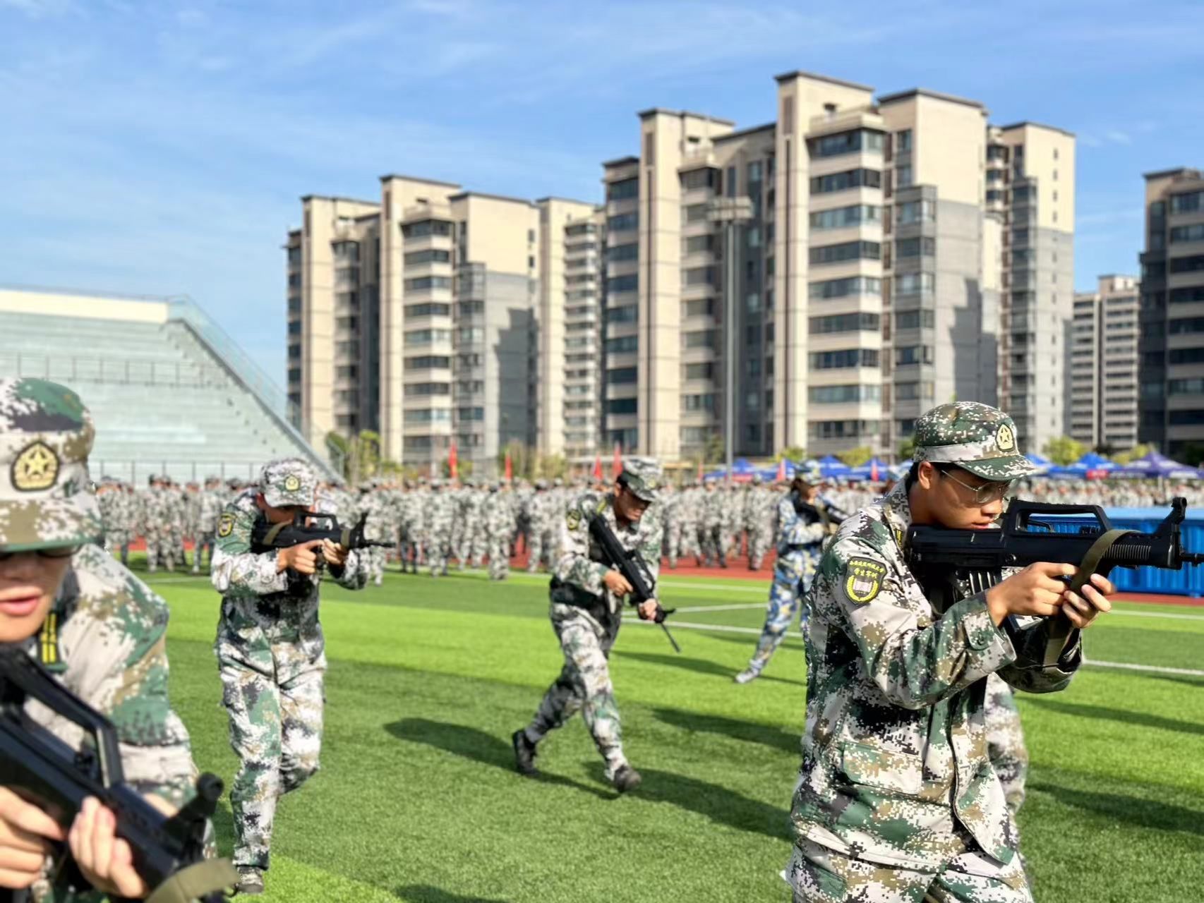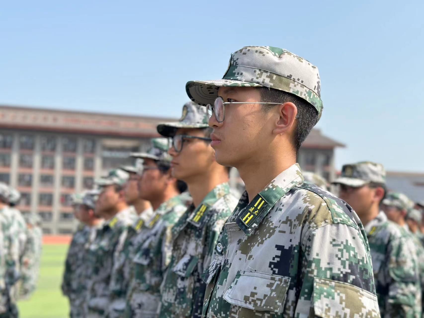 的2023级新生们不惧烈日和高强度的训练,尽显青春风华和报国决心!汗水从眉边散落,军魂从内心磨砺而出。