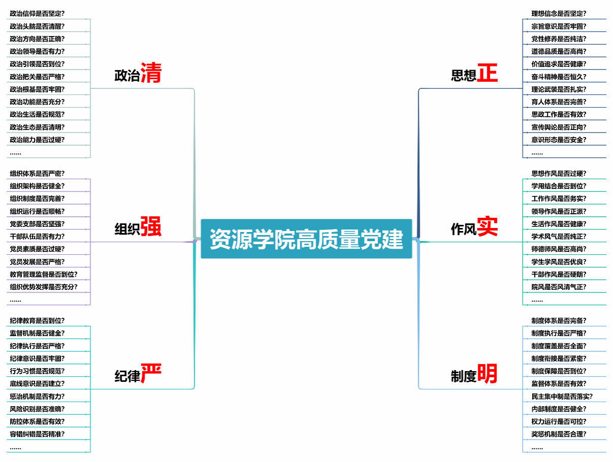 坚持科学、系统、规范原则,细化“4+12”党建工作体系,聚焦“什么是资源快猫短视频 高质量党建”关键问题,从党的六大建设入手,以“政治清、思想正、组织强、作风实、纪律严、制度明”为出发点和落脚点,探索构建了资源快猫短视频 高质量党建框架体系,开出党建“问题单”,明确“任务书”,制定“施工图”,为党建工作质量提升建立政策理论依据及实践探索基础。与此同时,通过推行快猫短视频 领导班子“三张清单”、制定快猫短视频 年度党建工作重点任务清单、构建党建制度体系等举措,逐级夯实责任,逐项抓好落实,持续提升党建工作科学化、系统化、规范化、实效化水平。