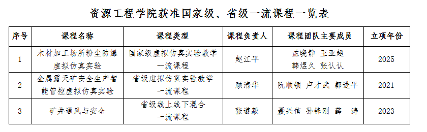 在课程建设方面,《木材加工场所粉尘防爆虚拟仿真实验》获批国家级虚拟仿真实验教学一流本科课程,《矿井通风与安全》获批陕西省线上线下混合一流本科课程,《金属露天矿安全生产智能管控虚拟仿真实验》获批陕西省虚拟仿真实验教学一流本科课程。在教材建设方面,主编出版教材16部,获校级优秀教材奖一等奖2项、二等奖2项。