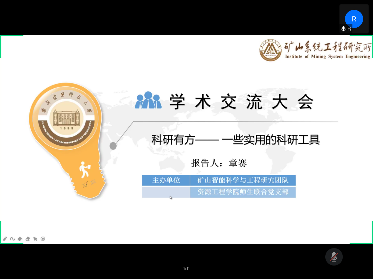 为了进一步提升资源学院师生科研素养和科研能力,7月3日下午,学院邀请矿山系统工程研究所章赛博士做了题为“科研有方——一些实用的科研工具”的线上学术沙龙主题分享活动。全院五十余名师生参与了此次交流活动。
