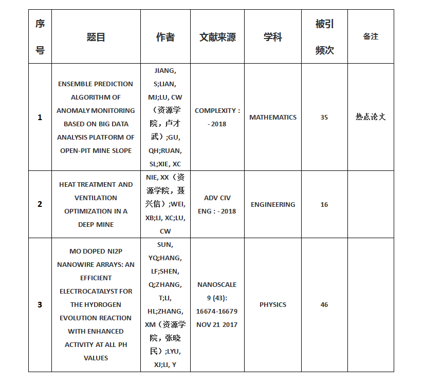 本期数据覆盖时间为2009年1月1日—2019年4月30日,其中我院高被引论文3篇,热点论文1篇。