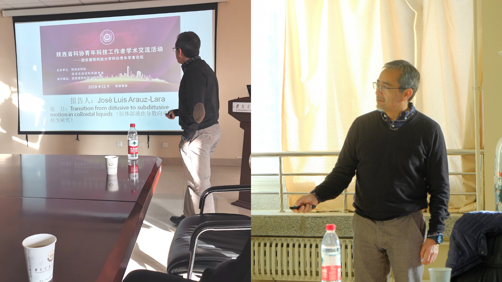 报告会上,Arauz Lara教授围绕胶体溶液的性质与最新研究展开,对胶体溶液中颗粒的运动与颗粒之间的行为机制进行了详细的介绍,对其团队提出的去极化动态光散射技术(Depolarized dynamic light scattering)及其两种模型的建立基础进行了翔实生动的展示,并对该技术在表征胶体颗粒分散与亚分散(超分散)领域内的应用实践与应用前景进行了详细的介绍与评价。Arauz Lara教授的学术报告激发了与会教师、研究生对胶体领域研究的浓厚兴趣,多名相关专业教师对Arauz Lara教授介绍的前沿理论与技术进行了深刻的交流、探讨,甚至在报告结束后,仍有数名我院青年教师与Arauz Lara教授对相关领域的研究难点、研究热点进行了富有深度的交流与探讨。本次学术报告学术氛围浓厚,学术观点交流、讨论热烈,对于学院相关领域的科研进展具有积极的推动作用