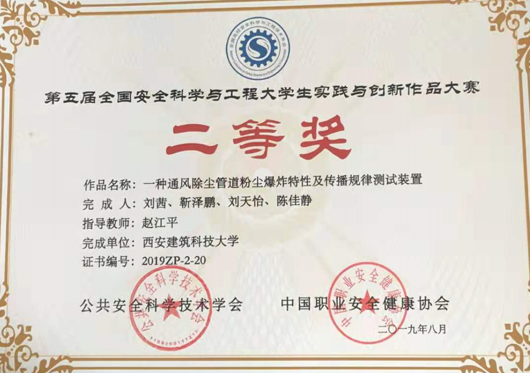大会期间,进行了第五届全国安全科学与工程大学生实践与创新作品大赛颁奖仪式,由赵江平老师指导的“一种通风除尘管道粉尘爆炸特性及传播规律测试装置”和“基于Labview的水泥企业的安全生产预警仿真系统”两个项目分获二等奖和三等奖。