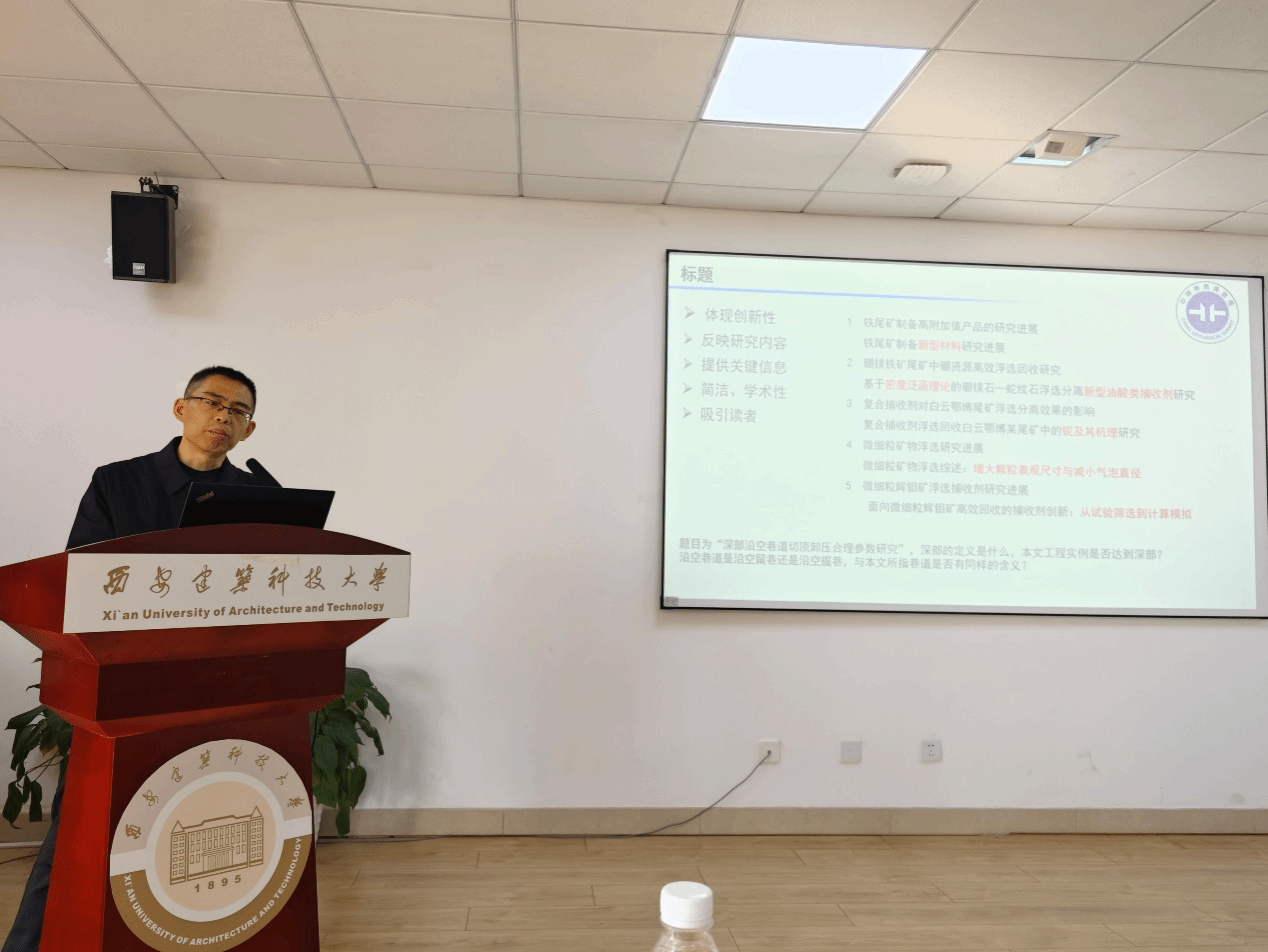 曹飞以《关于科技论文写作的思考》为题,从期刊编辑的视角出发,系统阐述了科技论文的写作方法与技巧。报告围绕科技论文的定义与特点、科技期刊概况、撰写要求及相关规范四个模块展开。他指出,科技论文写作的关键在于“探索本质、寻找答案”,并以矿物加工与分离领域的具体科学问题为例,说明了写作中应注意的核心要点。他还分析了摘要、引言、结果与讨论等章节的常见问题,并提出相应改进建议,并逐一解答了学生在投稿中遇到的各类问题。