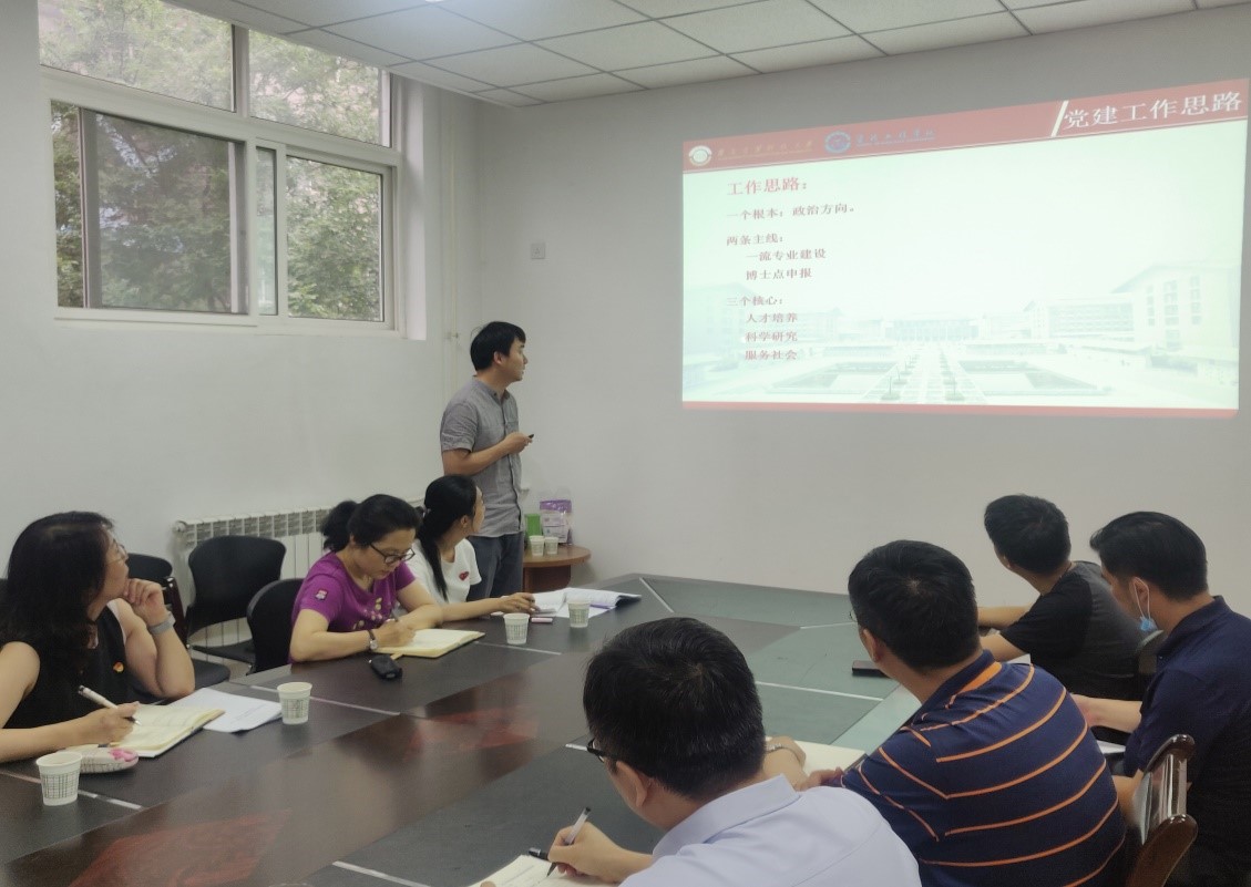 汇报会上,学院采矿工程系党支部书记汪朝从工作思路及特色做法、典型经验及工作成效、存在不足及努力方向等方面汇报了“样板支部”创建工作进展情况。