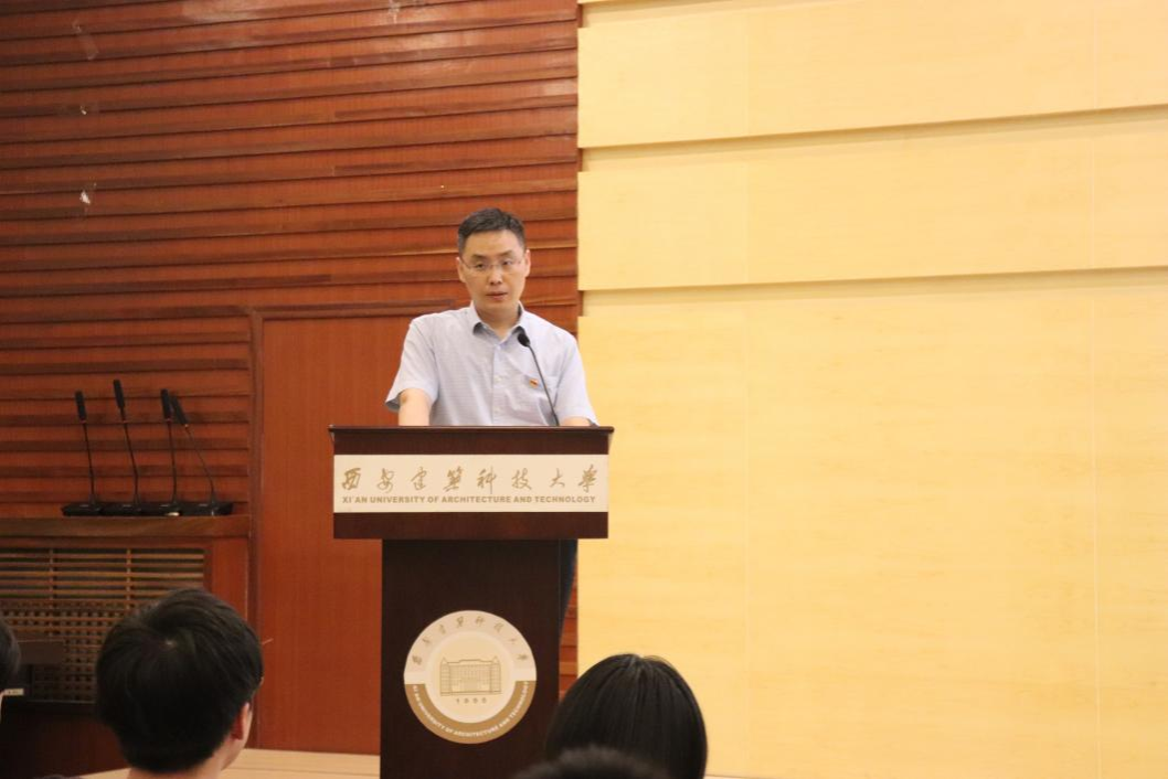 党委书记魏彦民为各学生党支部2023届毕业生党员讲授在建大的最后一堂党课。学院党委副书记、副院长李枚阳,全体毕业生党员参加了此次活动。