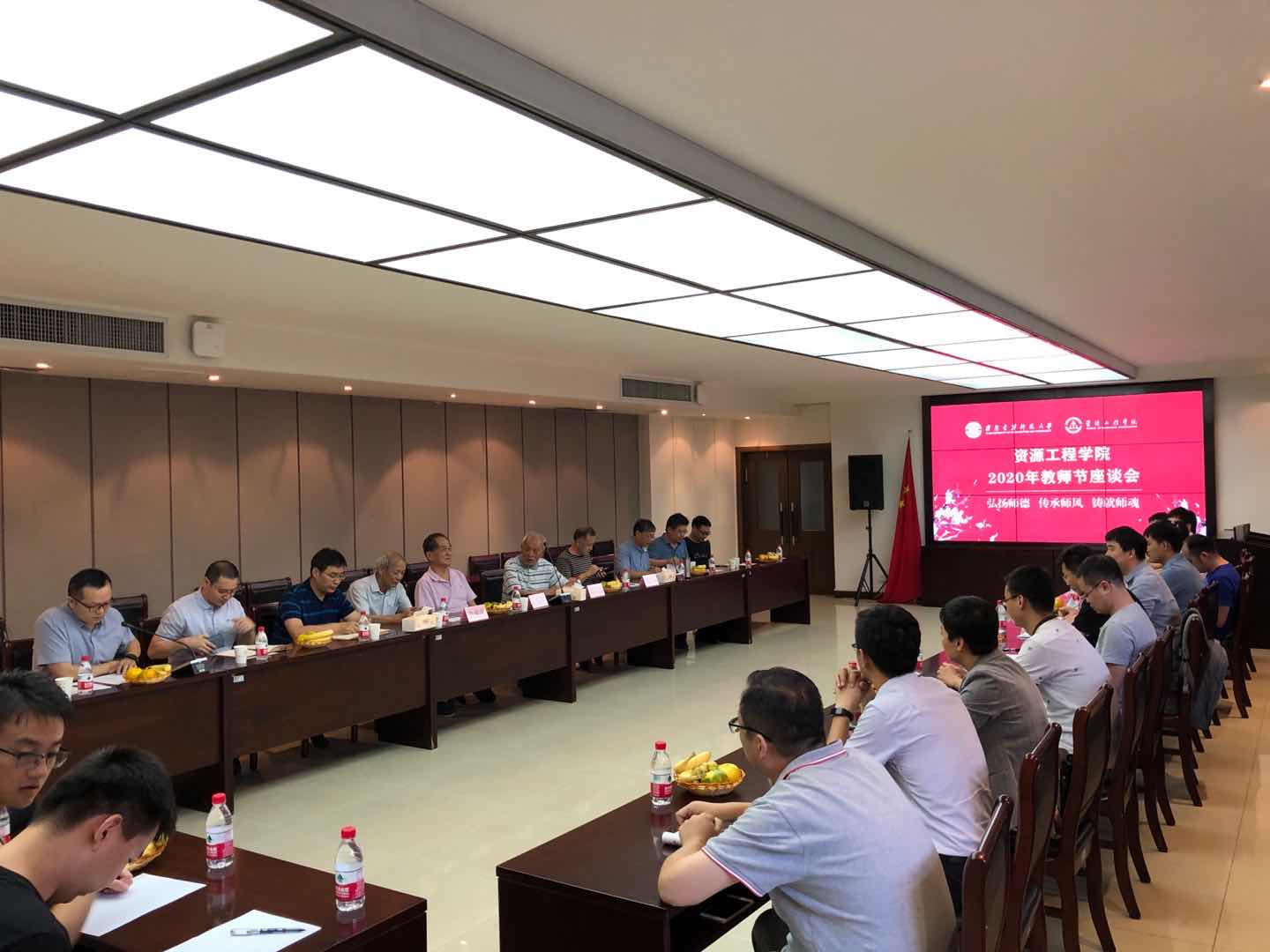 召开“弘扬师德、传承师风、铸就师魂”主题教师代表座谈会。原地质专业陈代忠、原矿加专业金冠章、原矿加专业谢建宏、原资源系党总支副书记石荣业四位老教师,学院全体班子成员、各教师党支部书记以及近五年入职的二十余位青年教师参加了此次座谈。座谈由学院党委副书记、副院长、工会主席刘冠主持。