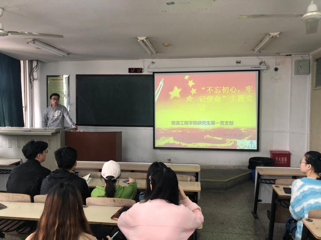 研究生第一党支部进行“不忘初心、牢记使命”主题党课学习,本次党课由支部书记强浩同志讲授。他从近代中国社会主要矛盾讲起,解析了我党“不忘初心、牢记使命”精神的历史渊源。他表示,作为青年学生,要学习老一辈的奉献精神和奋斗精神,牢记自我初心,践行自我使命。