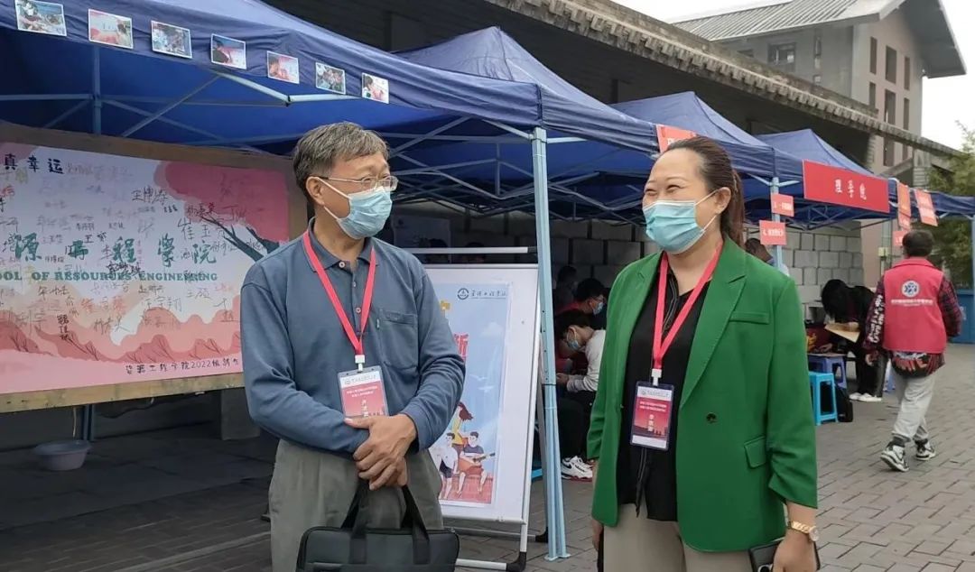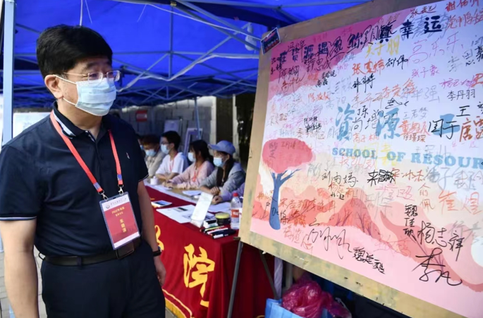 党委书记朱晓渭莅临资源学院迎新工作现场指导工作,并与新生和工作人员进行交流。