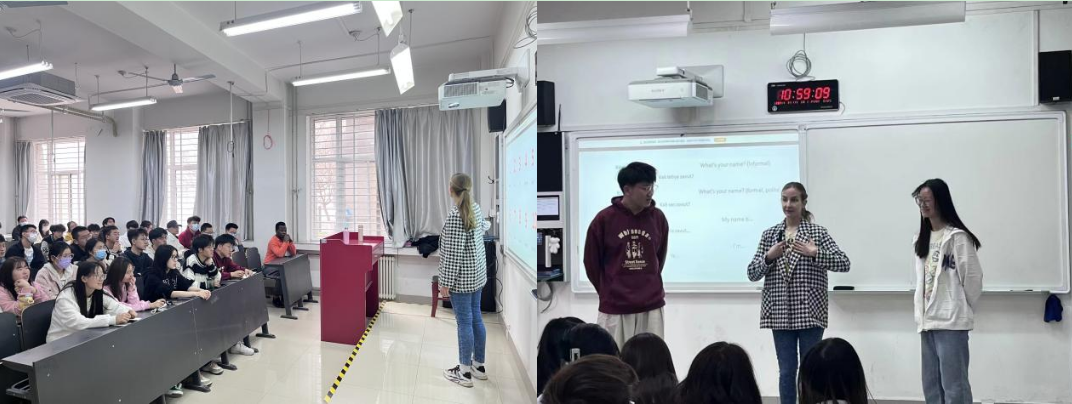 在俄语口语课中,怀揣着对俄语学习向往的资源学子们早早的来到教室,外教安娜以风趣幽默的教学方式迅速拉近了与同学们的距离。俄语音标、数字发音、礼貌用语的表达、互动介绍等多元化课堂教学环节,使同学们深深沉浸在俄语的语言环境中。分组交流、口语介绍等实践教学环节活跃了课堂氛围,用口语输出带动俄语口语的学习。