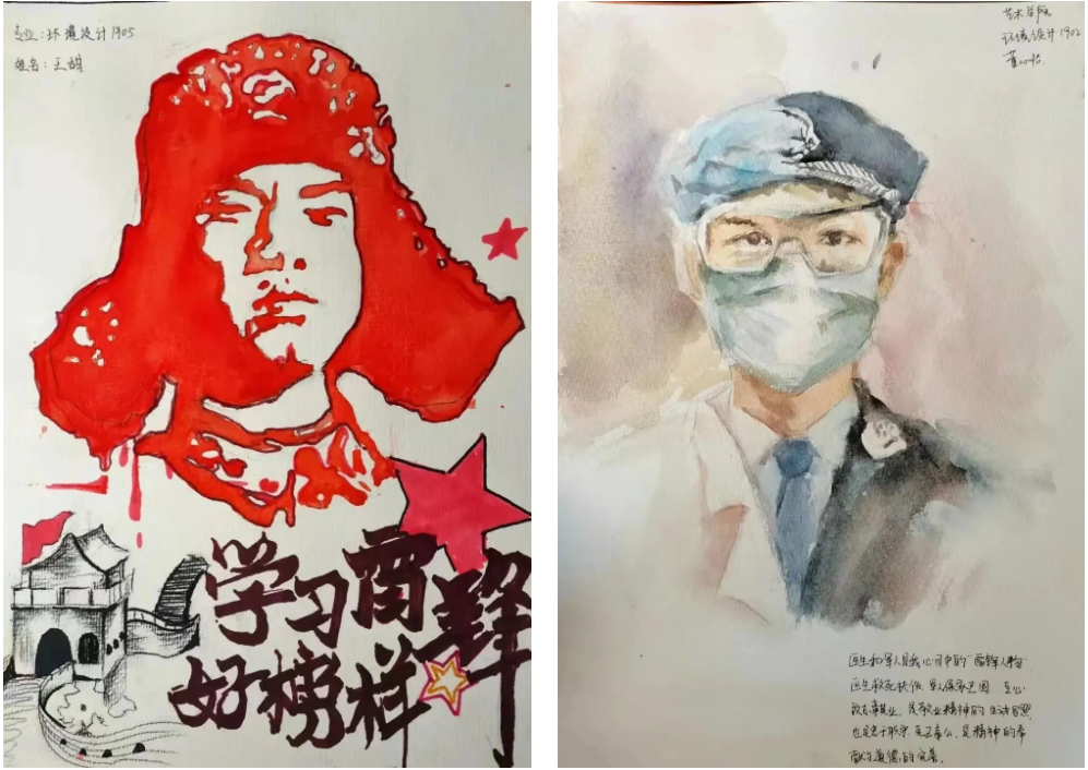 2.在作品旁或末尾书写自己对所画人物雷锋事迹的个人感受。