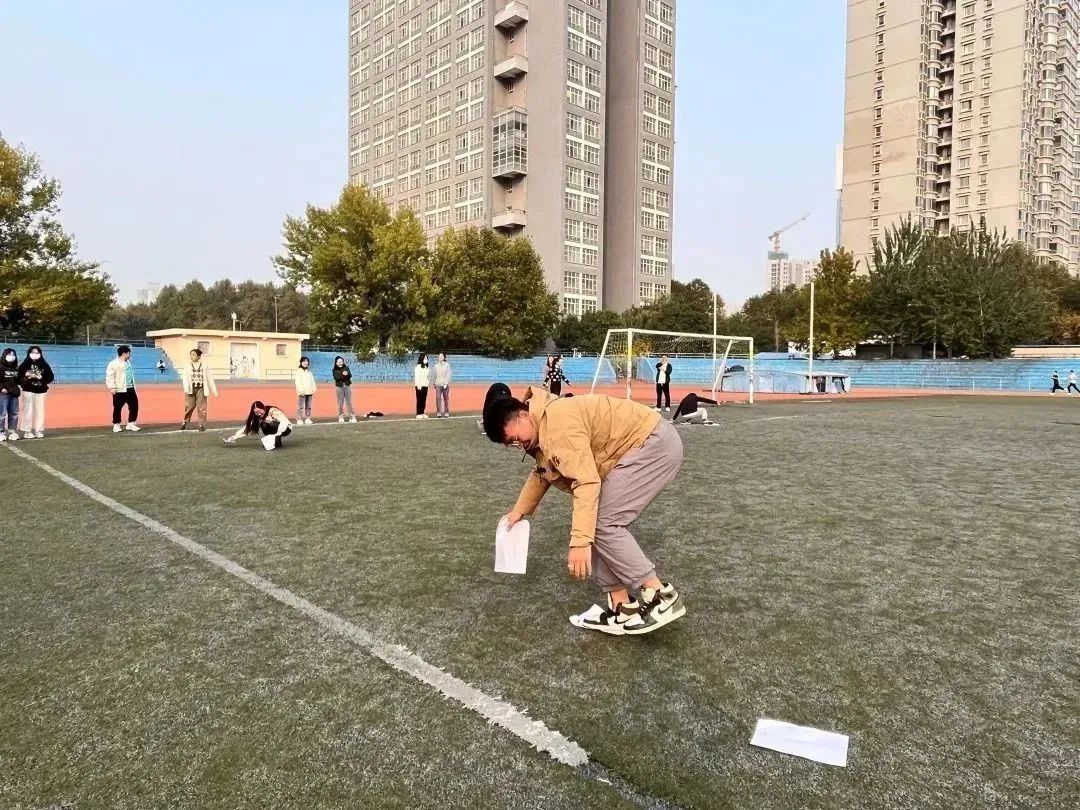 在一片欢声笑语中大家开始第二个游戏“摸纸过河”。游戏开始时,每组同学都充满了斗志,在有来有回的接力中,第二组同学获得第一名。