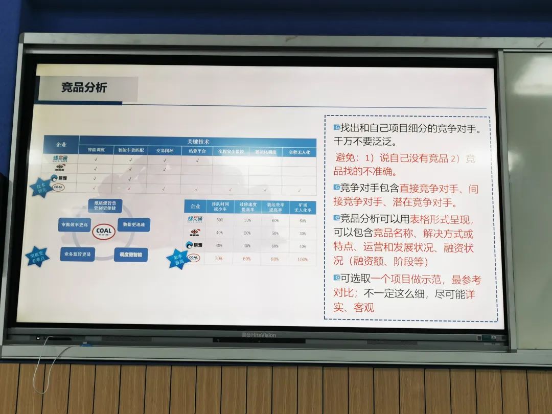 会议伊始,江松老师从互联网+比赛的重要性出发,介绍了学校认可度较高的比赛。展示了去年资源学院在挑战杯主赛道中拿到的省一金三银奖项,并以其中的一项优秀获奖作品:《足智多“煤”—煤炭智能运销领跑者》为例进行详细的介绍。会议最后,江松老师针对竞赛计划书的细节展开讲解,并与同学们进行了讨论。