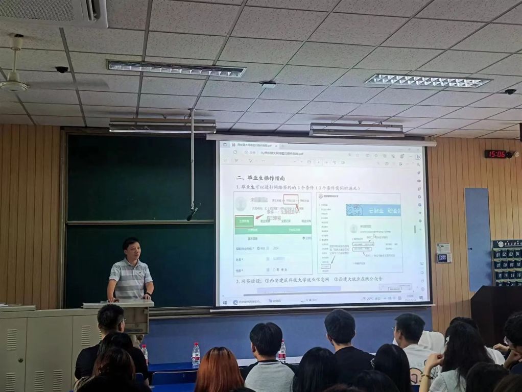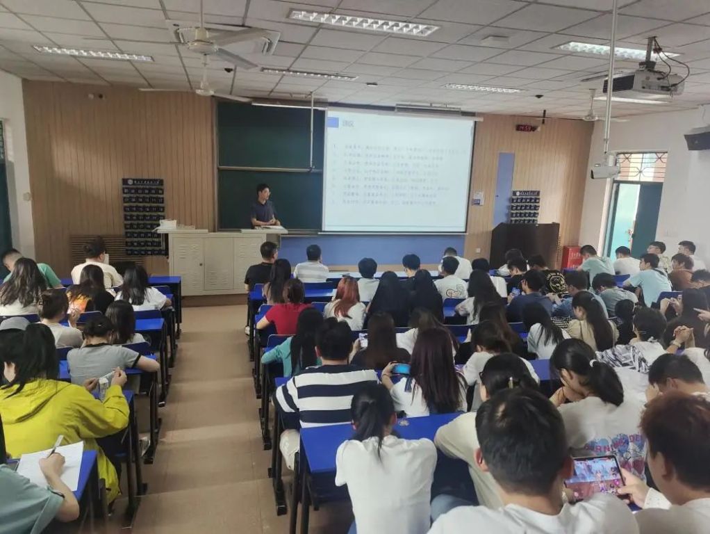 2024届毕业生就业动员大会。大学生就业指导服务中心王栋、研究生毕业班辅导员李明、就业协会副会长徐烨以及2024届全体毕业生参加此次会议。会议由辅导员袁航主持。