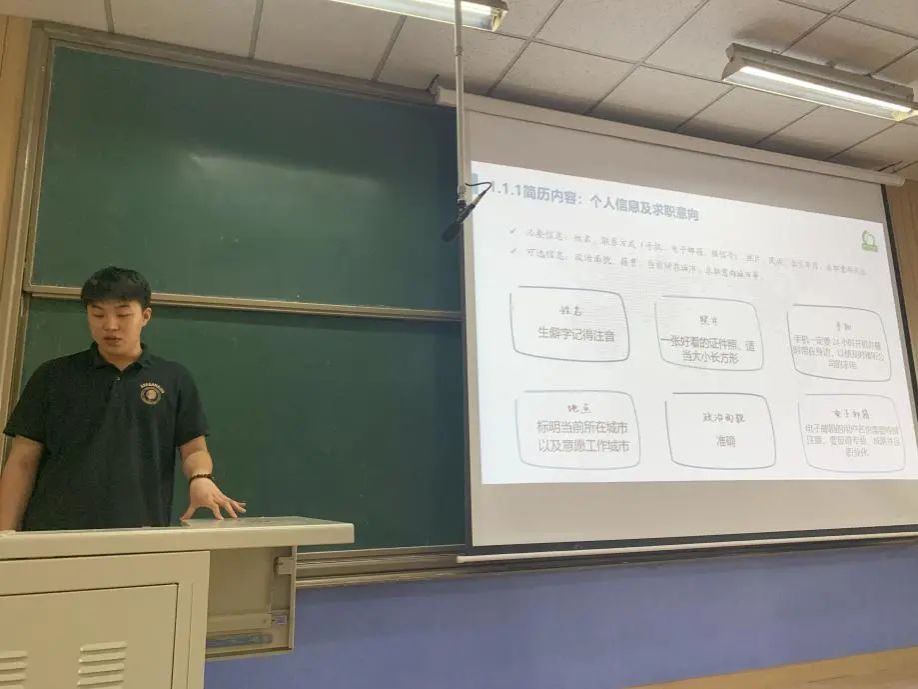 就业协会徐烨对简历制作及面试技巧进行培训,从企业招聘的角度,为即将进入求职季的同学们提供了宝贵的求职面试经验。建议大家针对不同类型的岗位,结合自身优势制作简历。