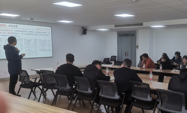 接着,袁航围绕学院教师考核目标任务中对创新创业的要求、双创教育相关课程设置、相关专业赛事推荐等方面做了全面的介绍,重点讲解了学院承办的一类B赛事“中国大学生服务外包创新创业大赛”,梳理了我院师生2019-2022年在双创竞赛方面取得荣誉和成果,鼓励各位师生要肩负时代责任,发扬科研精神、创新精神,积极参与创新创业类竞赛,锻炼实践能力,提高学生综合素质。