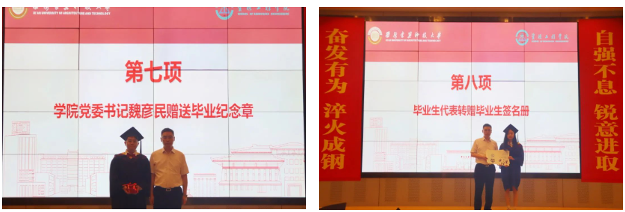 学院党委书记魏彦民代表学院向毕业生赠送了毕业纪念章,并接受了由全体毕业生共同赠予学院的毕业季签名纪念册。