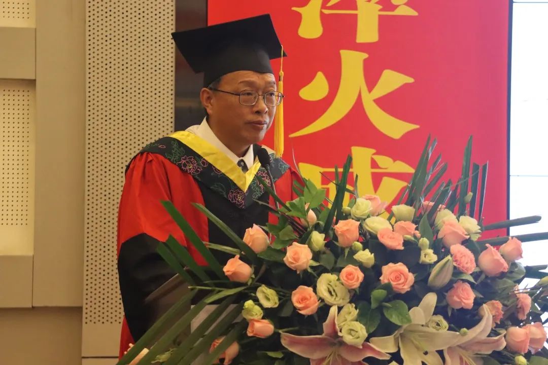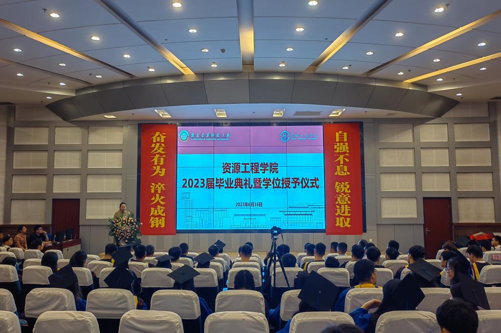 院长卢才武教授在致辞中向2023届各位毕业生圆满完成学业表示祝贺,同时向爱岗敬业的老师们、默默奉献的管理人员,以及关心支持学院发展、助力学生成长的家长、校友和社会各界人士,表示敬意与感谢!他叮嘱全体毕业生要与新时代同行,乘新时代的东风,融入新时代的潮流,做社会进步的推动者,争做中华民族伟大复兴的追梦者和圆梦人。在同学们即将结束当前学习生涯之际,向2023届毕业生们提出三点希望:一是要有理想,理想是人生的指路明灯,是奋斗的目标,青年人既要怀揣远大理想,也要脚踏实地;二是要自信,自信是成就事业的基础,有自信、有追求,才能取得卓越的成就;三是要执着、秉承“自强不息、奋发有为、锐意进取、淬火成钢”的资源精神,希望大家不随波逐流,不轻言放弃,在今后的人生征途中扬帆起航,拥有属于自己的美好人生。