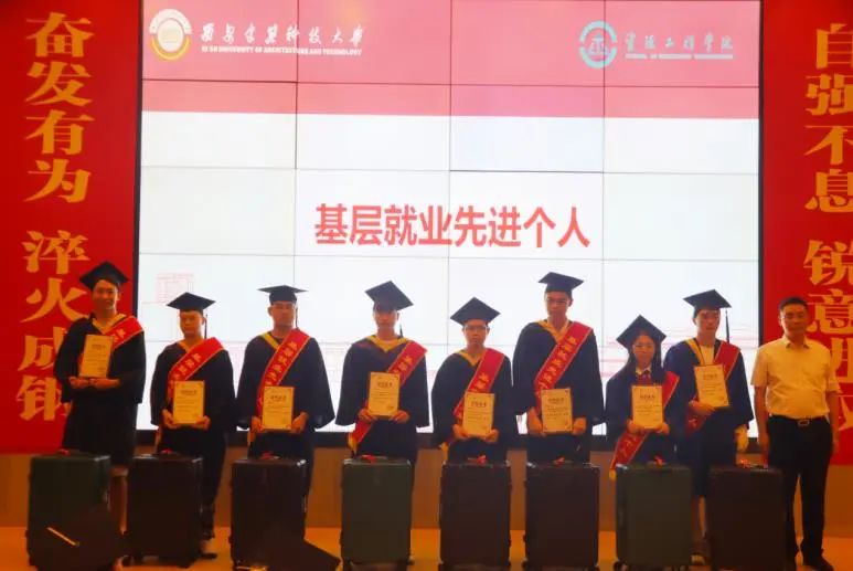 师生荣誉授予实施方案》。在典礼上,隆重表彰了研究生“优秀毕业论文”、本科生“优秀毕业设计(论文)”、“新秀”奖、“青苗”奖、学风建设领航奖等奖项的获得者,尤其是针对毕业生在就业选择中,赴西部、基层和国家重点行业就业的学生代表,学院授予“基层就业先进个人”荣誉,由学院党政班子成员为优秀毕业生颁奖,以榜样的力量激励广大青年学子追求卓越,奋发图强。