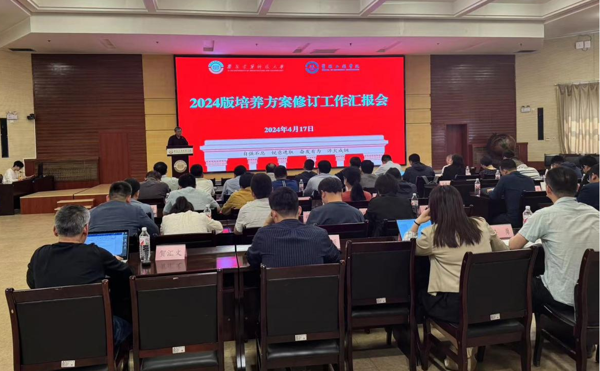 在雁塔校区工科楼三楼报告厅举行2024版人才培养方案修订工作汇报会。学院院长卢才武、副院长郭进平、卜显忠及全体教师参加会议。