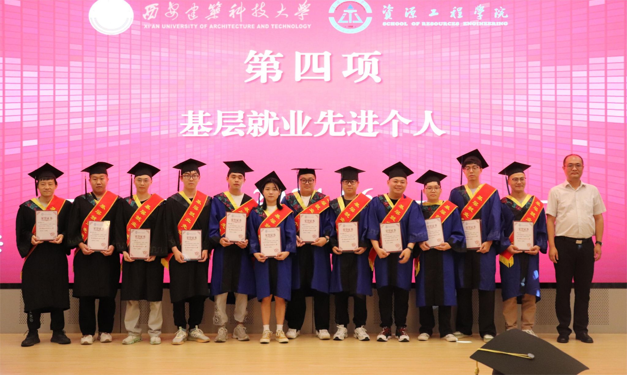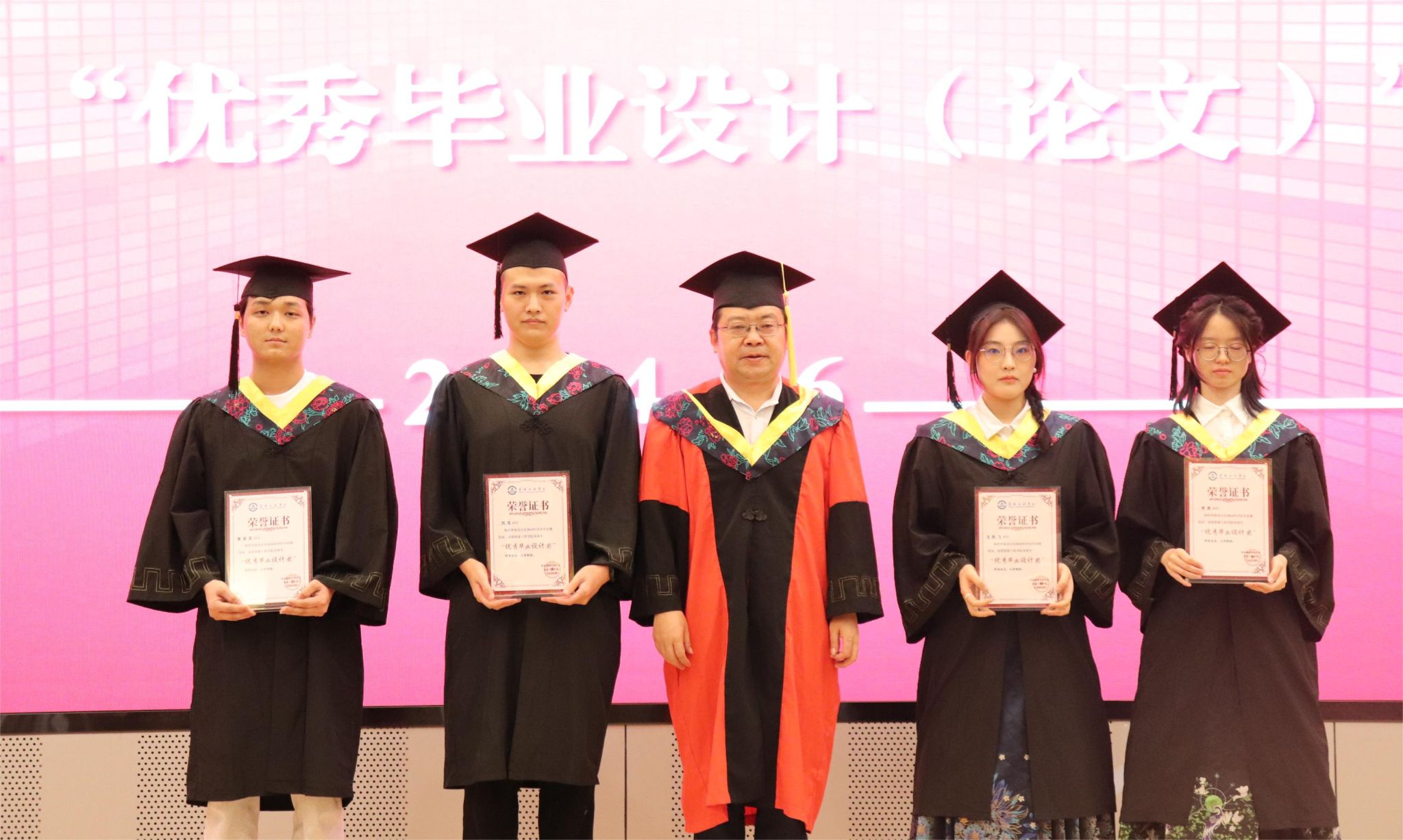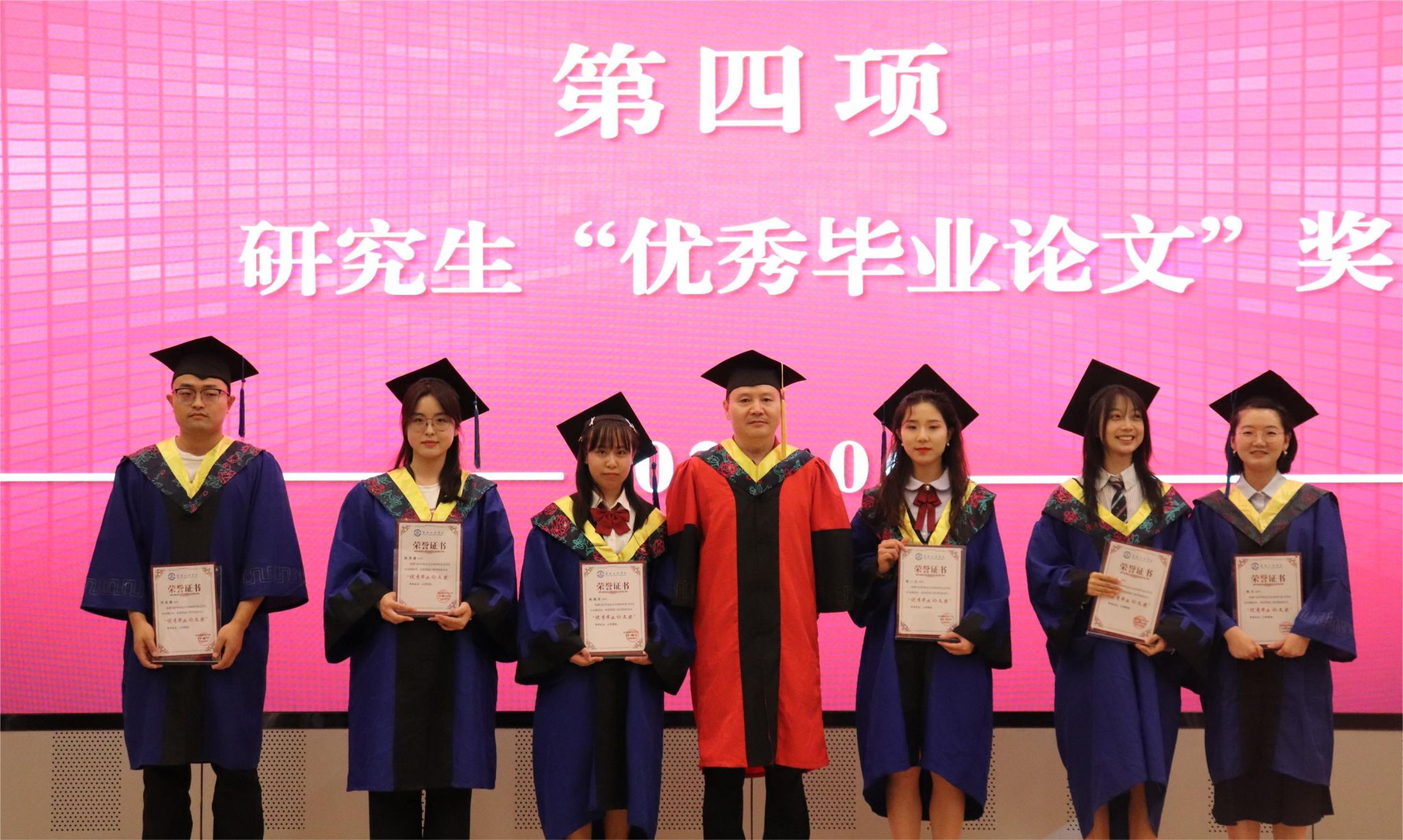 学院领导班子成员为获得“学风建设领航”奖、研究生“优秀毕业论文”奖、本科生“优秀毕业设计(论文)”奖以及“基层就业先进个人”的毕业生们颁奖,对毕业先进集体和个人表示祝贺。