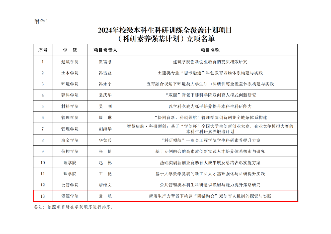 6月25日,我校创新创业学院发布《关于公布2024年校级本科生科研训练全覆盖计划项目(科研素养强基计划)立项结果的通知》,经组织推荐、专家评审,学院辅导员袁航主持项目《新质生产力背景下构建“四链融合”对创育人机制的探索与实践》获批立项,成为首批立项的13个项目之一。