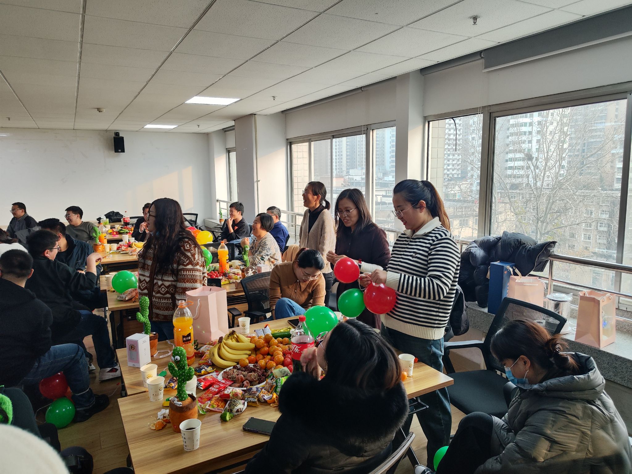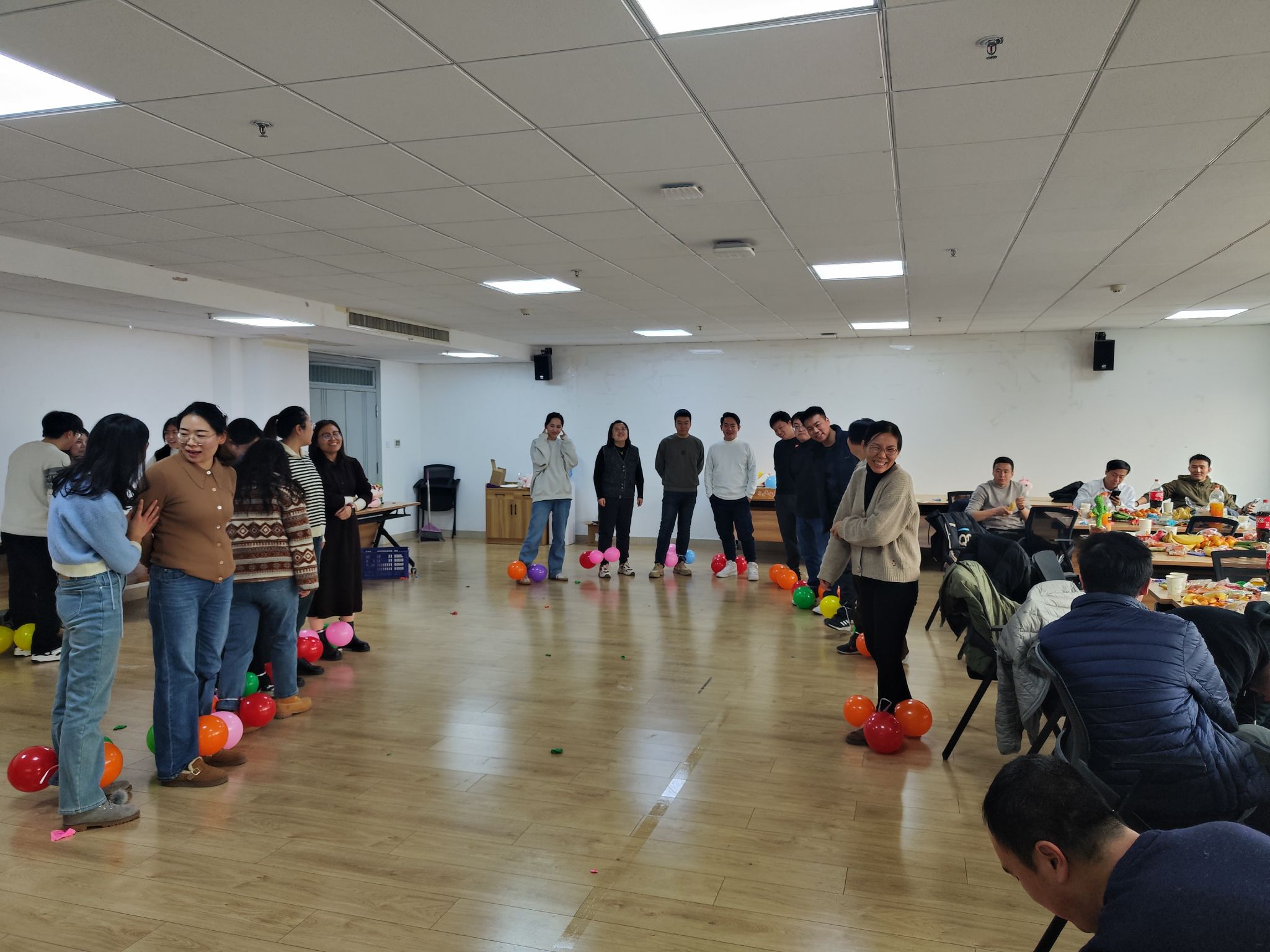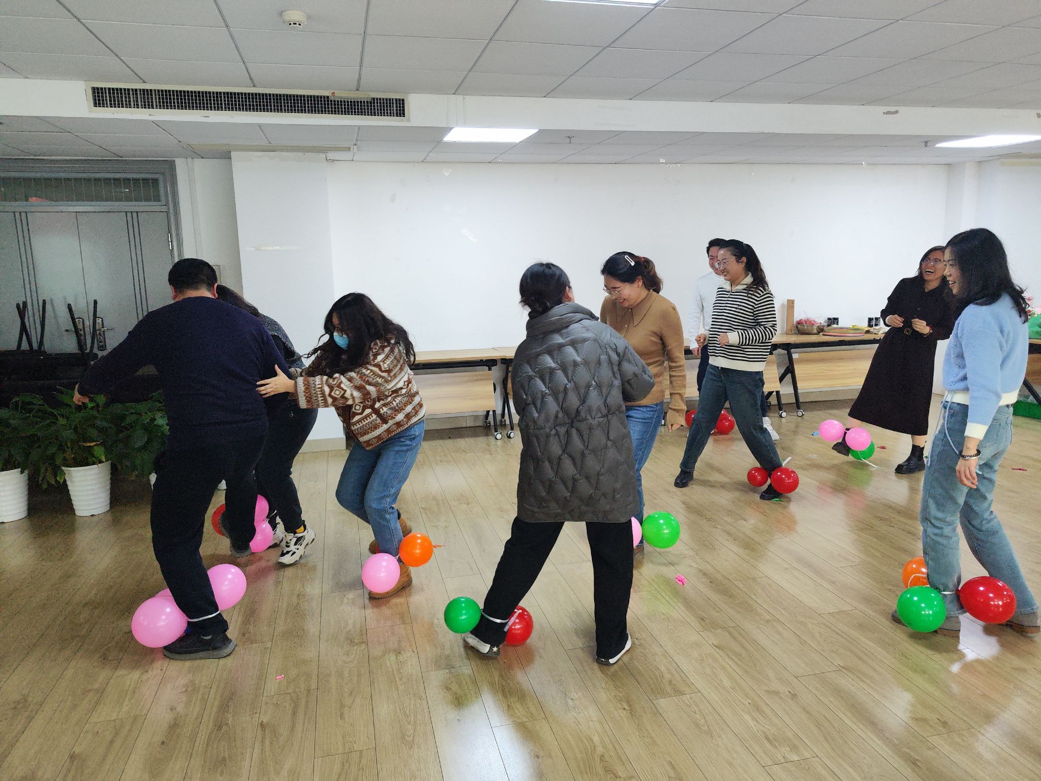 本次联欢会,由套圈、踩气球、抢凳子三个游戏拉开序幕。联欢会现场,老师们积极参与游戏,脸上溢满着幸福的微笑,玩得津津有味,精彩有趣的游戏环节赢得了老师们的一致称赞,整个活动现场笑声连连,高潮迭起,洋溢着欢乐、祥和的节日氛围。