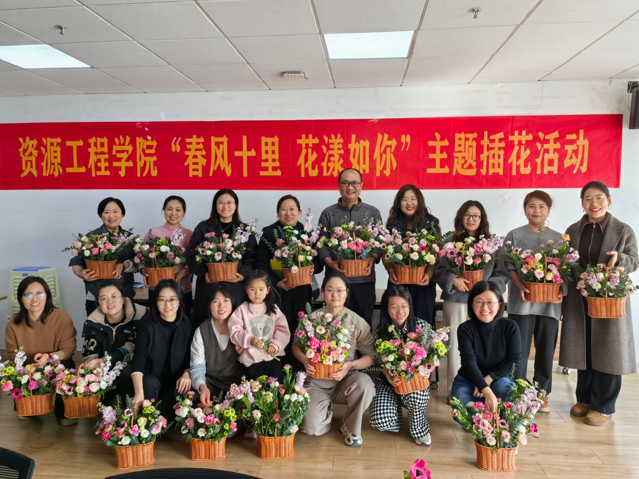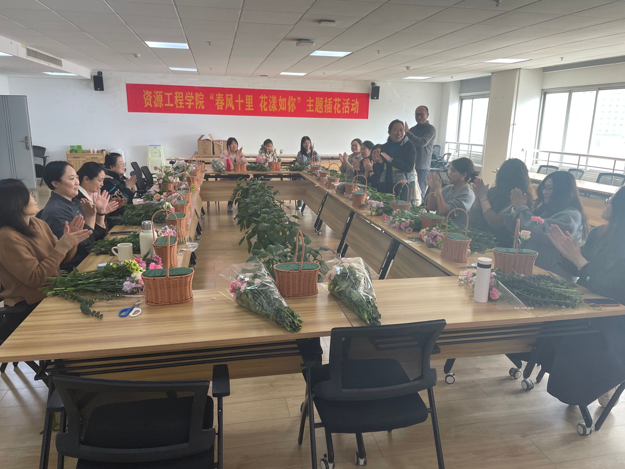 在工科楼713会议室举办了“春风十里 花漾如你”主题插花活动。学院党委书记张佩,党委副书记、分工会主席李枚阳及全体女职工参加了此次活动。