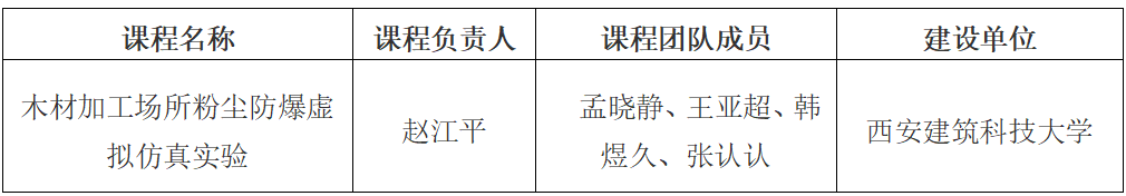近日,教育部公示了第三批国家级一流本科课程认定结果,我院安全工程系赵江平副教授负责的《木材加工场所粉尘防爆虚拟仿真实验》课程成功入选,实现了我院国家级虚拟仿真实验教学一流课程的突破。