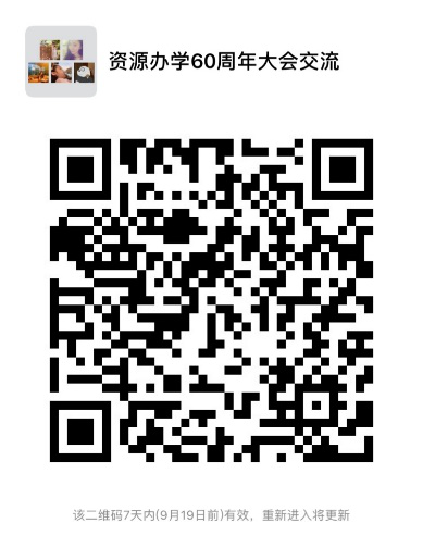 请参加本次会议的人员,扫描二维码加入“资源办学60周年大会交流”微信群。