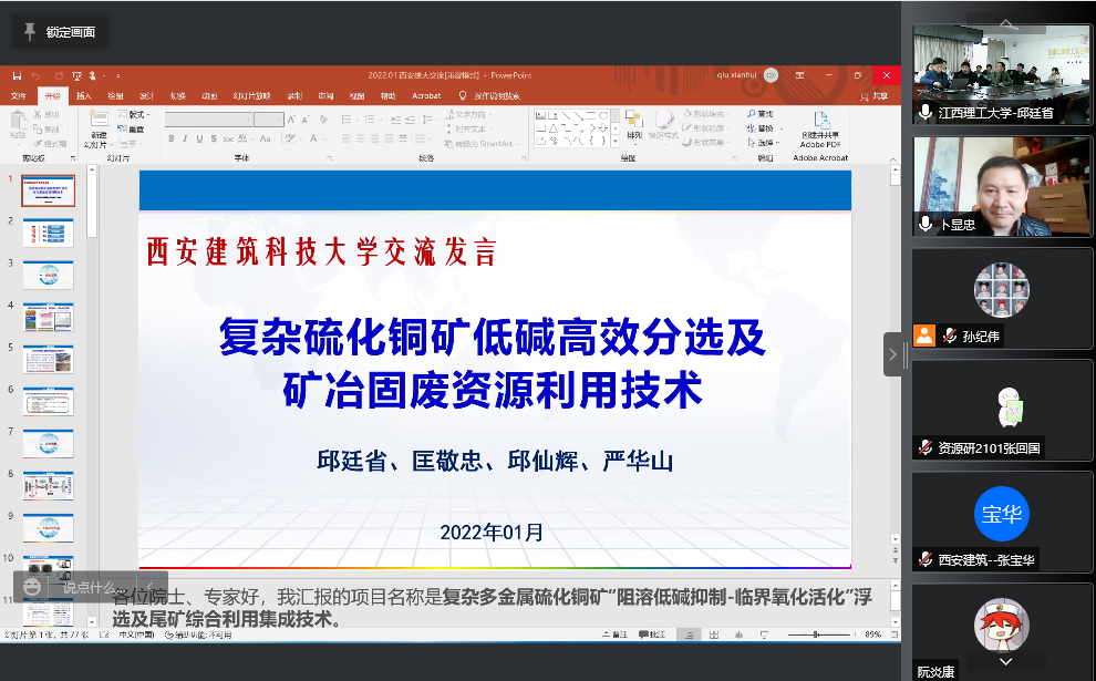 1月16日,快猫短视频 特邀江西理工大学副校长邱廷省教授通过线上腾讯会议为我校师生作了题为“复杂硫化铜矿低碱分选及矿治固废资源化利用技术”的学术报告。本次报告会矿业类及相近学科专业教师教师、研究生共计百余人参加,报告会由副院长卜显忠主持。