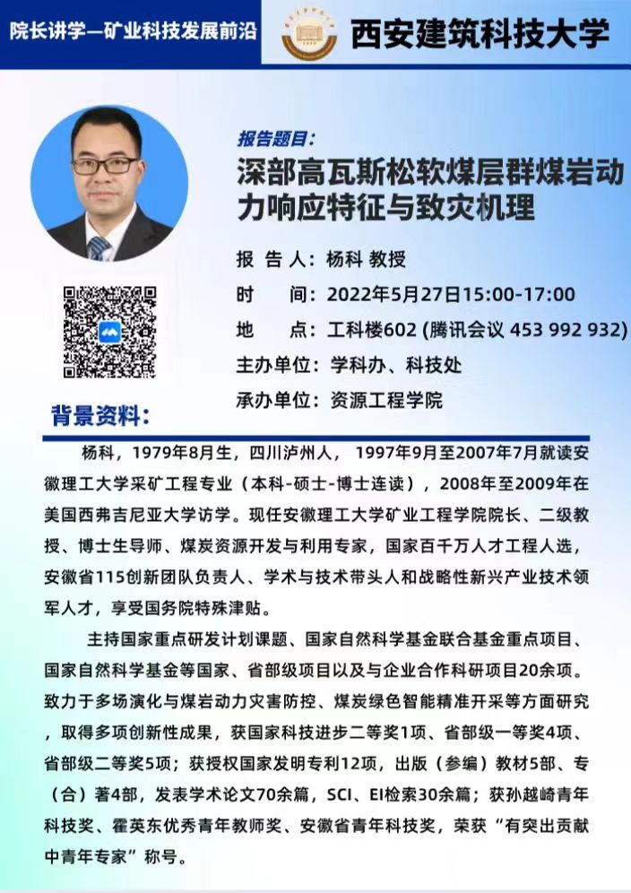 上一条:院长讲学-矿业科技发展前沿 陈庆发 协同开采理念及相关研究进展 下一条:院长讲学-矿业科技发展前沿 王东 露天矿边坡监测与滑坡预警的思考
